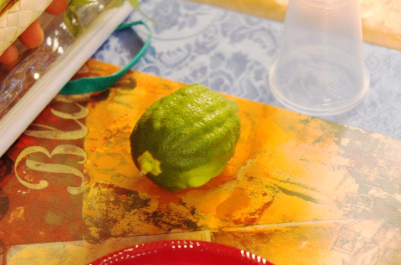 Als Zemel naar de synagoge gaat, gaat de etrog mee
