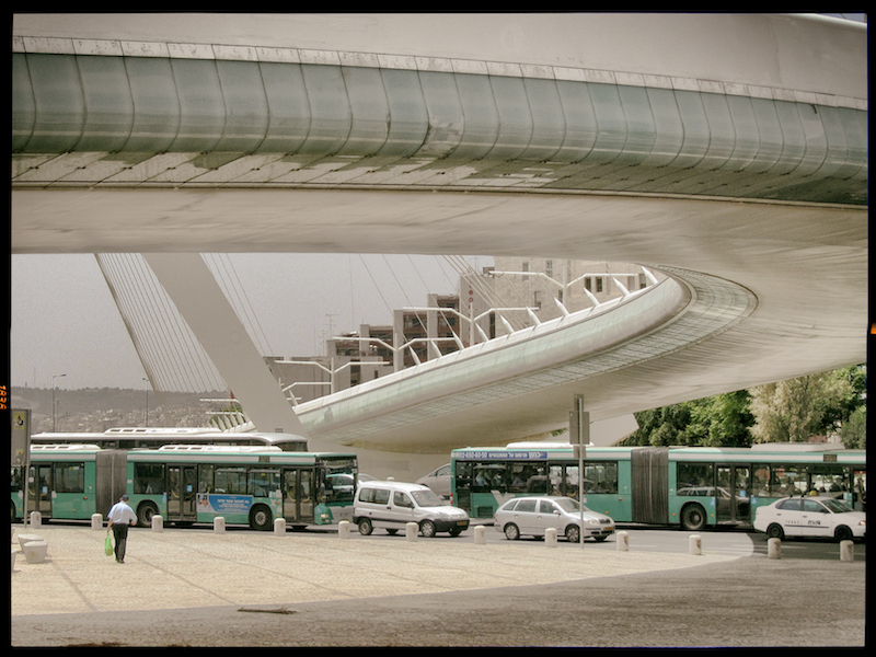 Tegenover het busstation, zit een bedelaar op de grond, met een grijs colbertje en een pet op. Honderden lopen langs hem heen. Sommigen verrichten een rechtvaardige daad door hem wat te geven. Achter hem bevinden zich de stands waar het publiek de aanvraag voor de magnetische kaartjes van de tram kan indienen. Ook bevindt zich hier een verkoper van bloemen voor de sjabbes. Daarnaast bevindt zich een lange rij vervallen en dichtgemetselde panden.