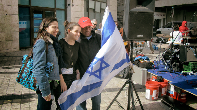 De zingende vrouwenstem en de begeleidende gitaar zijn al van verre te horen. Er blijkt zich een grote groep verzameld te hebben op een pleintje in het centrum van Jeruzalem.