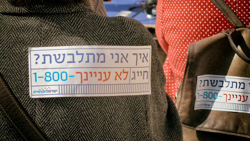 Het bijkt snel dat hier verontruste Jeruzalemmers staan. Er is tenslotte ook het een en ander aan de hand in hun stad: ultra-orthodoxen dringen erop aan dat fotos van vrouwen uit het straatbeeld verdwijnen (d.w.z. het hoofd mag in elk geval niet te zien zijn), in een aantal stadsbussen zitten de mannen voorin, de vrouwen achterin (ze kunnen bij de chauffeur dus ook geen kaartje kopen), en orthodoxe soldaten hebben zich uit de voeten gemaakt bij ceremonies waar vrouwelijke soldaten optraden.