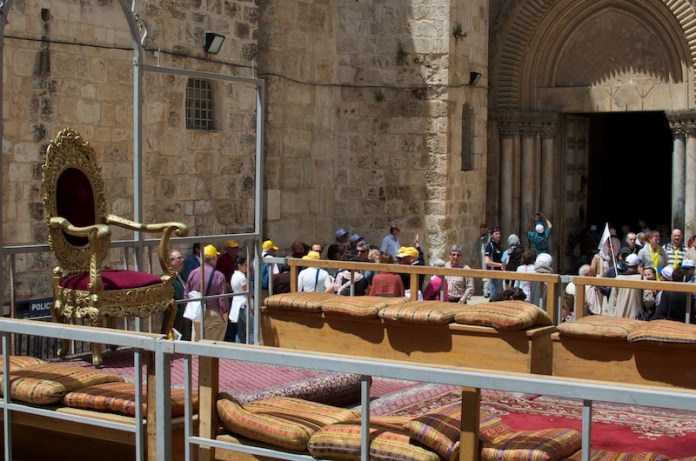 11 apr 201226 mrt 2017Alfred Muller Een troon voor de kerk Een troon voor de Heilige Grafkerk. Dit weekend vieren orthodoxe christenen Pasen. Hun gewoonten zijn anders dan die van westerse christenen. De patriarch wordt met speciale eer ontvangen. Foto: Alfred Muller Tweet Klik om te delen op Telegram (Opent in een nieuw venster) Telegram Klik om af te drukken (Opent in een nieuw venster) Print Meer Klik om dit te e-mailen naar een vriend (Opent in een nieuw venster) E-mail Delen op TumblrPocket Related