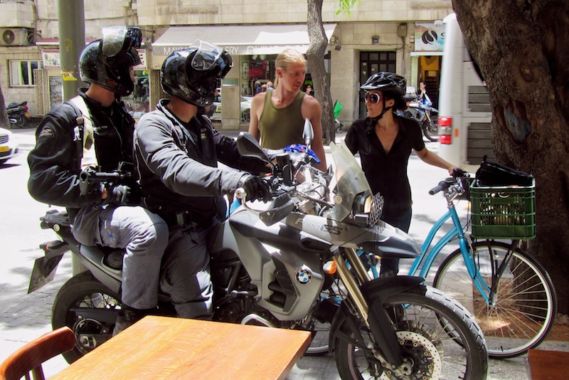 De motorpolitie in Jeruzalem passeert burgers. De agenten zijn zwaarbewapend om eventueel in te kunnen grijpen als er een terreuraanslag dreigt plaats te vinden. Foto: © Alfred Muller