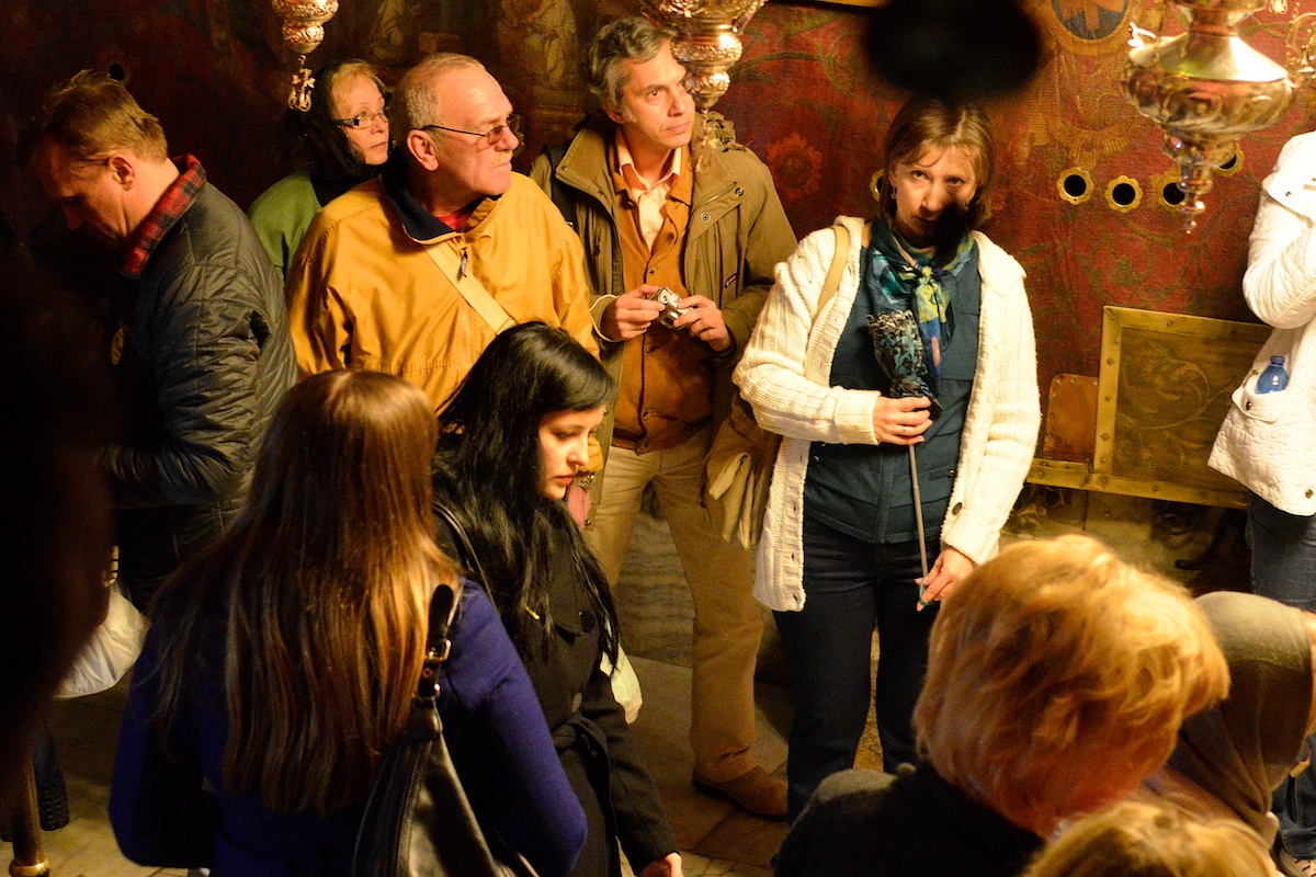 Grote drukte in Bethlehem in de dagen voor Kerst. Pelgrims in de Geboortegrot in de Geboortekerk van Bethlehem. Foto: © Alfred Muller