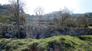 BEIT JALA – Het terrein waar de scheiding moet komen en waar priester Ibrahim Shomali wekelijks een mis houdt. Foto: © Alfred Muller
