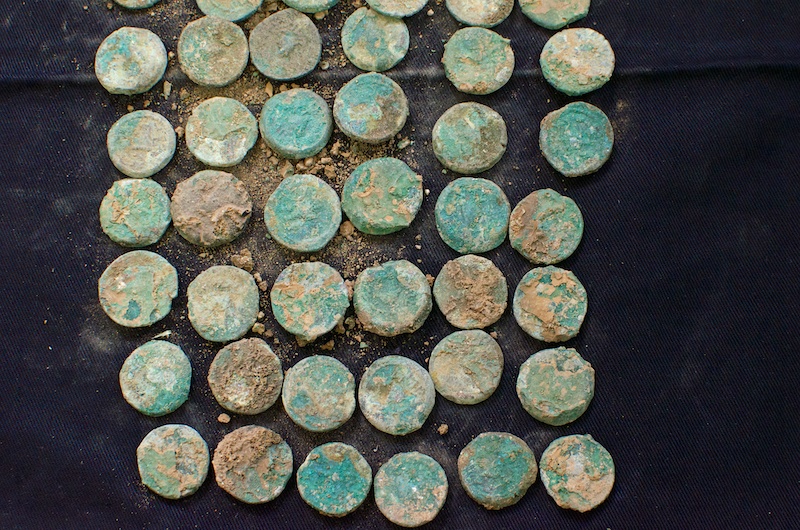 Munten uit het jaar 4 van de Eerste Opstand tegen de Romeinen (het jaar 69 of 70 na. Chr.). Foto: Alfred Muller