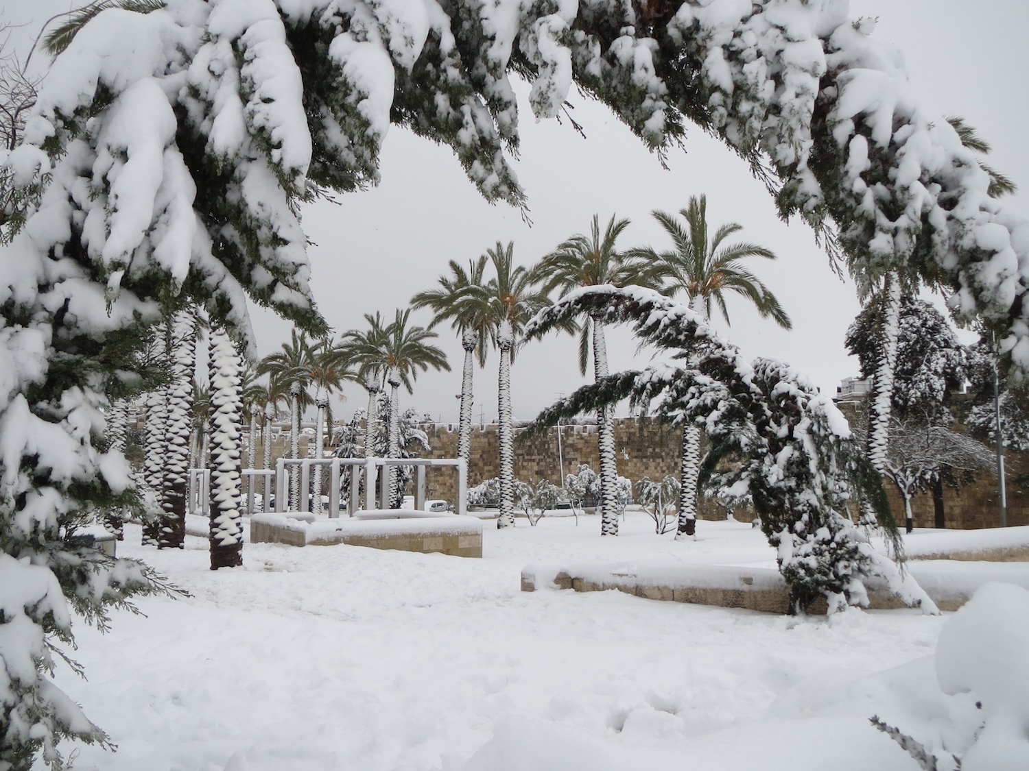 Een dik pak sneeuw in Jeruzalem