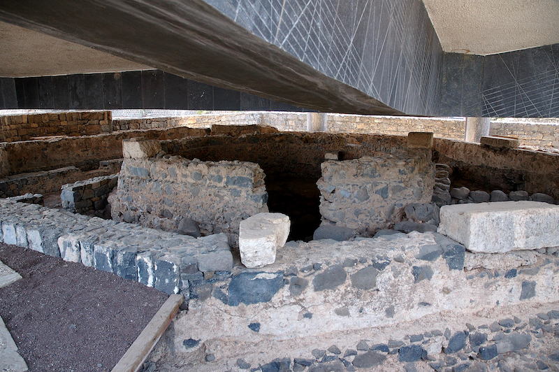 Petrus’ woning bestond slechts uit een kamer, met een deur naar een hofje. Daar kwamen ook andere eenkamerwoningen op uit. Het dagelijks leven speelde zich in dergelijke hofjes af. Dat kon makkelijk, want Kafarnaüm ligt in de Jordaanvallei, waar de temperaturen in de zomer ‘s middags oplopen tot 40 graden. De mensen sliepen in de kamers en borgen daar hun spullen op.