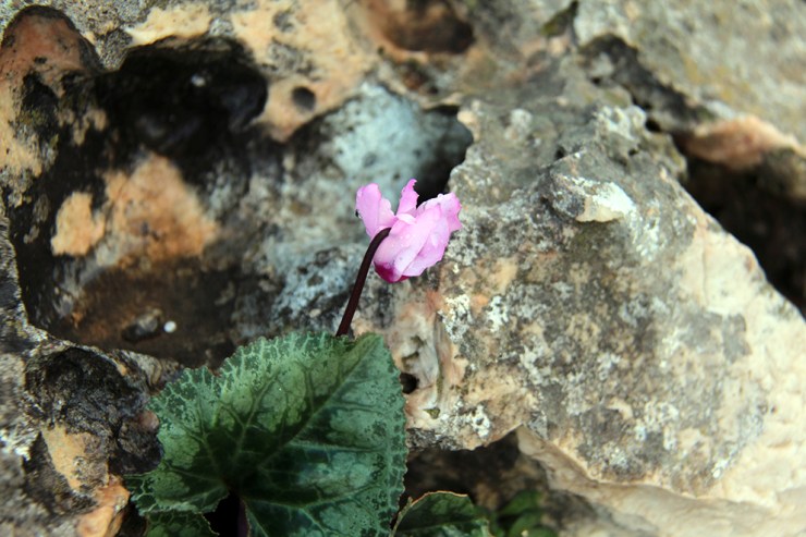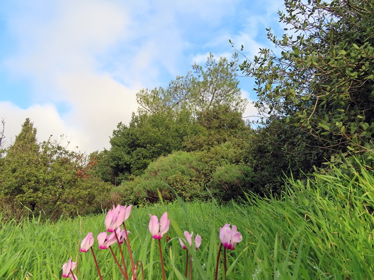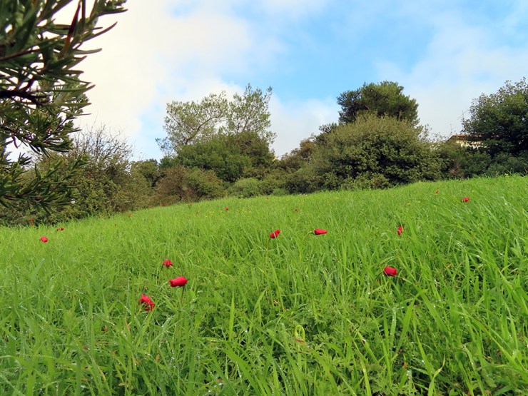 Dit is in de Vallei van het Kruis in Jeruzalem. Daar staan amandelbomen, anemonen en cyclamen in bloei.
