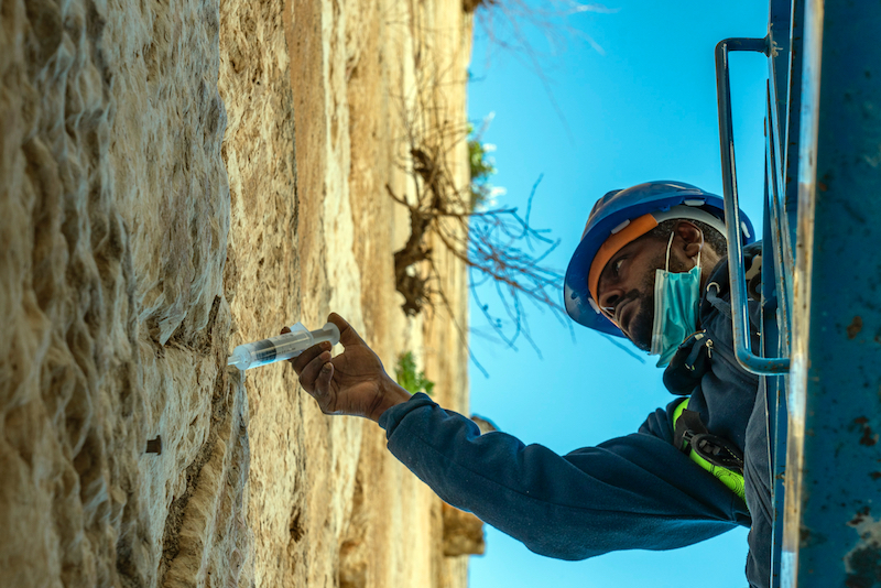 Restaurateurs hebben de afgelopen dagen de stenen van de Westelijke Muur in Jeruzalem geïnspecteerd en versterkt.
