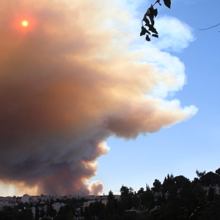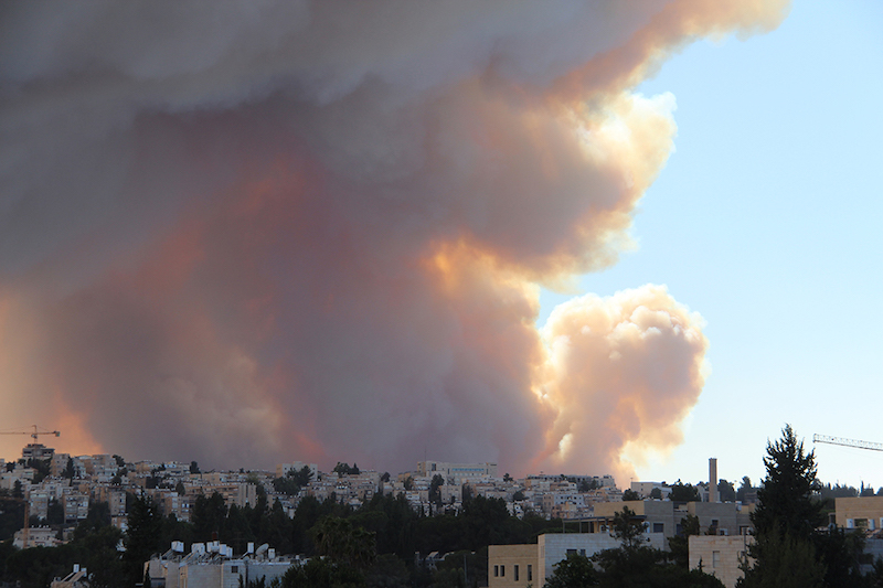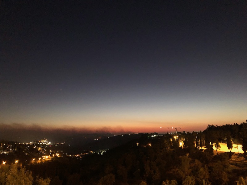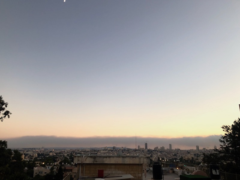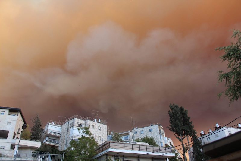 Zondag- en maandagmiddag deden zich vreemde verschijnselen voor aan de hemel boven Jeruzalem. Donkere, oranje wolken trokken over de Joodse en Palestijnse wijken.