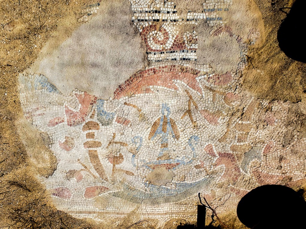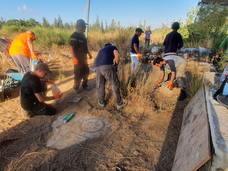 Decoraties in het mozaïiek. Foto: Gilad Stern. De Israëlische Oudheidkundige Dienst.
