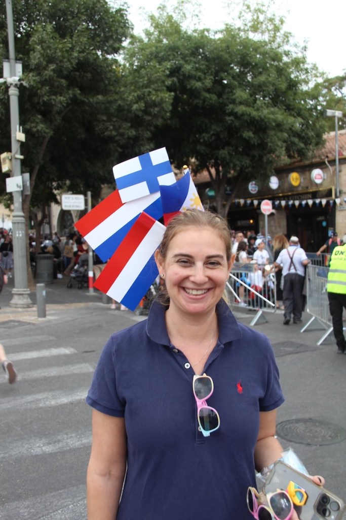 Veel Israëlische kinderen komen met hun ouders naar de marsroute. Daar krijgen ze vlaggetjes uit vele landen.