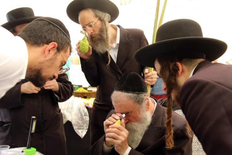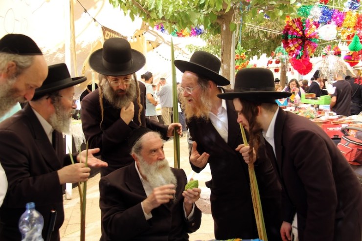De eerste foto’s zijn van orthodoxe Joden die attributen keuren die zij nodig hebben bij het Loofhuttenfeest.