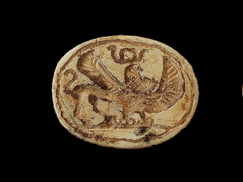 Een scarabee-amulet ontdekt op de site.