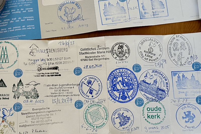 De Oostenrijker Johannes Aschauer richtte de tak vanaf Duitsland op. Daar is op 8 maart 2025 een stuk bijgekomen, die de Dam in Amsterdam met de Dom in Keulen verbindt. Walter beheert ook pelgrimspaspoorten voor wie de Jerusalem Way wil belopen. In Amsterdam zijn al drie officiële stempelplekken: Pied à Terre op de vierde verdieping van boekhandel Scheltema aan het Rokin, de Oude Kerk in de buurt van de Dam en het Stiltecentrum ‘De Papegaai’ aan de Kalverstraat. “Zo begint de pelgrimage al in de stad. In de drukte kom je stille plaatsen tegen.”